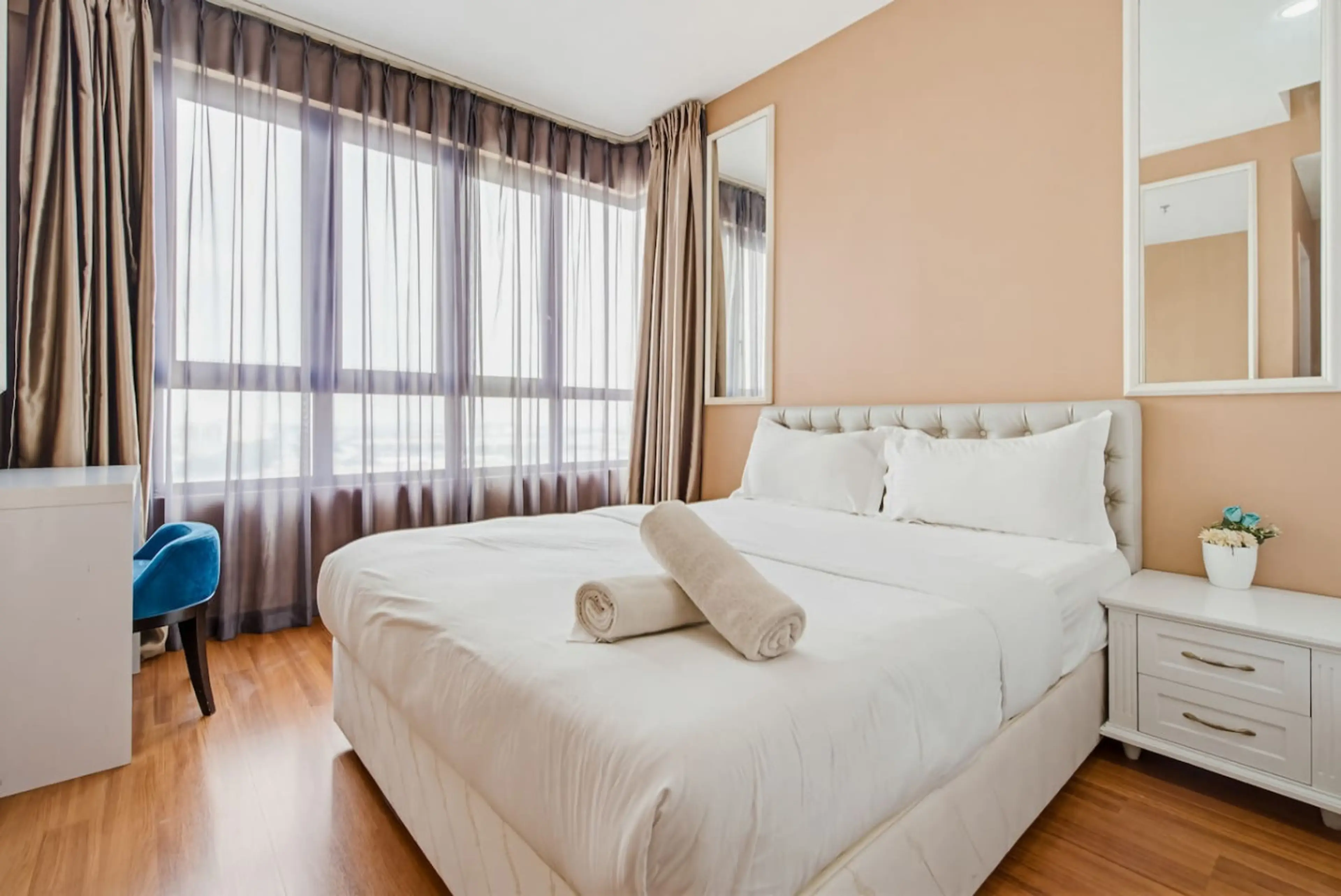 Negative: Eearly check out at 11am.should be 12pm.so, need to pay late check out fee rm25. Lower part of refrigerator is not cold.